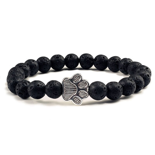 Kralen armband met kattenpootje | Zwart vulkanisch