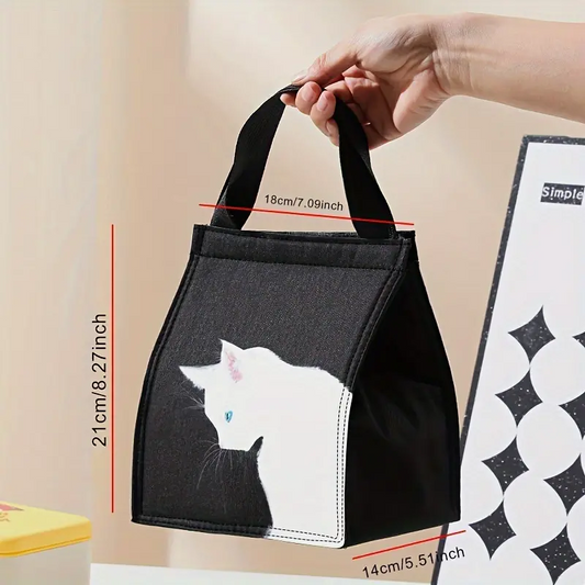 Een katten koeltas of lunchtas is compact en ideaal om bijvoorbeeld een sixpack blikjes, wat fruit en een zakje brood in mee te nemen. Door de flexibiliteit van de stof is een koeltasje makkelijk plat op te vouwen en neemt het thuis ook niet zoveel ruimte in beslag. En met de hengsels boven op de tas draag je hem gemakkelijk overal naar toe.
