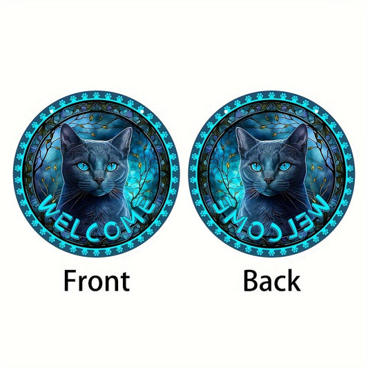 Metalen wandbord Blauwe Rus: Pas op, waakzame kat in de buurt!
