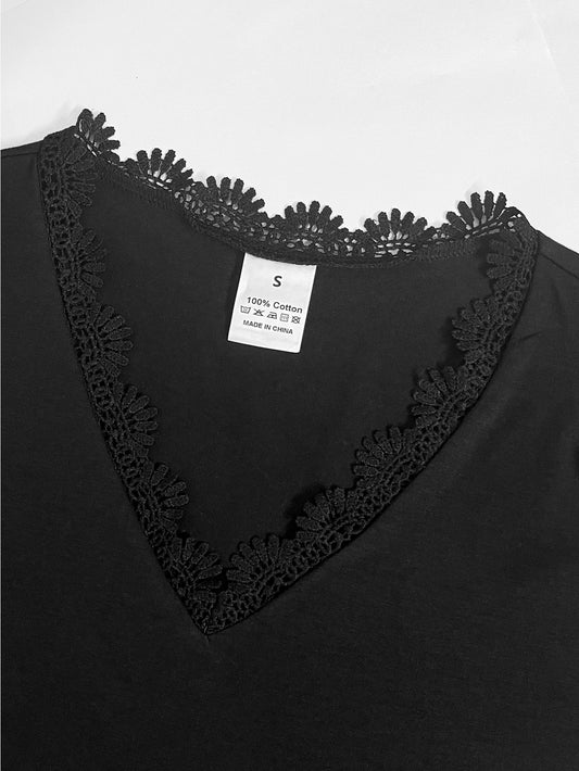 Katten t-shirt “kat Silhouet” met kant – Zwart | PRE-ORDER