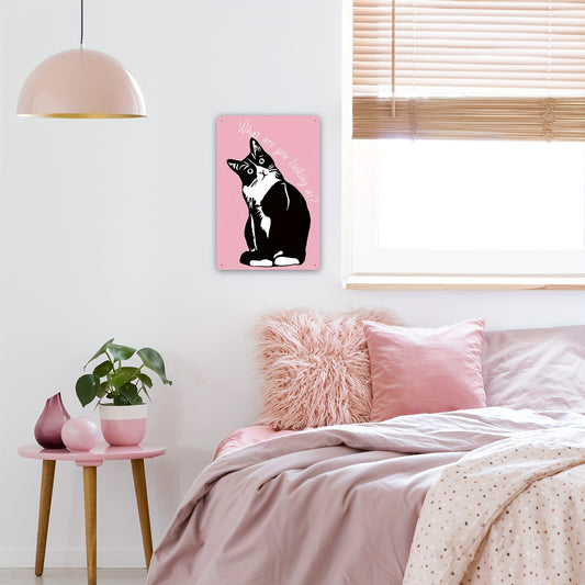 Metalen wandbord Tuxedo kat “What are you looking at?”