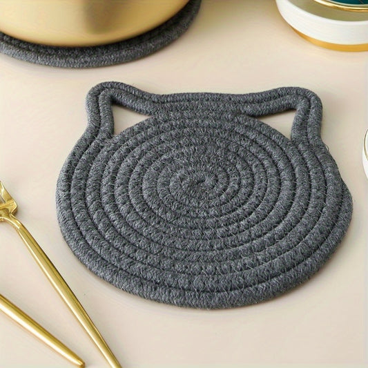 Katten onderzetters kattenkop 6 stuks gemêleerd grijs