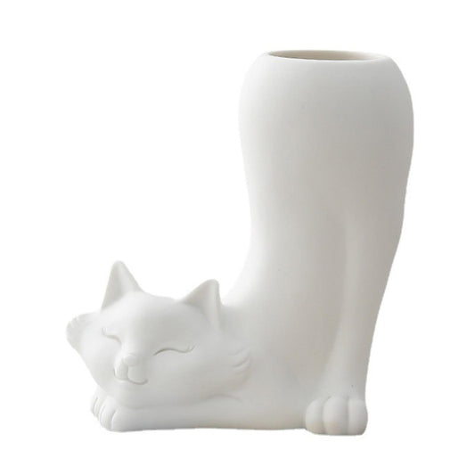 UitverkochtKatten vaas hars wit “Snoezepoes”